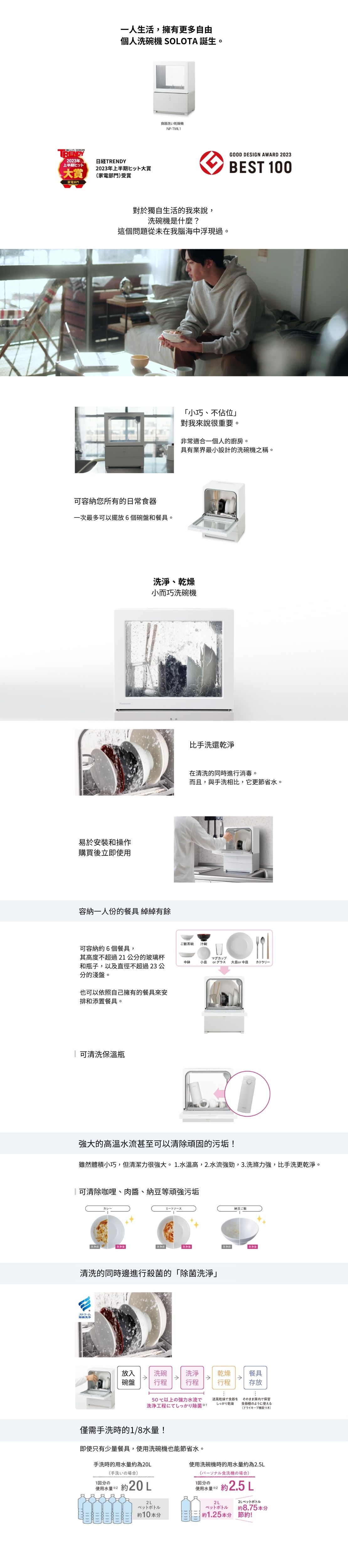 PANASONIC 國際牌 PANASONIC【NP-TML1】洗碗機 單人份 溫風乾燥 水流除菌 不需分岐水栓