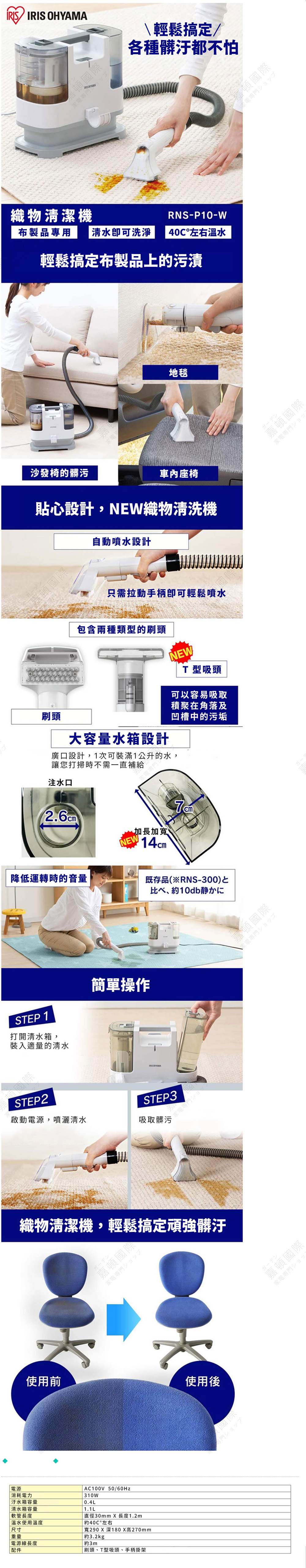IRIS IRIS【RNS-P10】織物清洗機 地毯絨布沙發 家用 污治清潔 沙發清潔 布製品 溫水清洗
